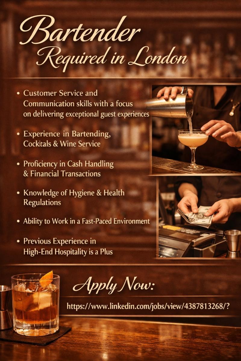 Maison Close Mayfair is seeking a full-time Bartender to join its energetic team in London. This on-site role involves preparing and serving a variety of beverages, delivering exceptional customer service, and maintaining a clean and organized bar area. Additional responsibilities include ensuring compliance with health and safety regulations, managing cash transactions, and contributing to the vibrant atmosphere of the venue. The ideal candidate will play a key role in enhancing guests' experiences through outstanding service and engaging interactions.