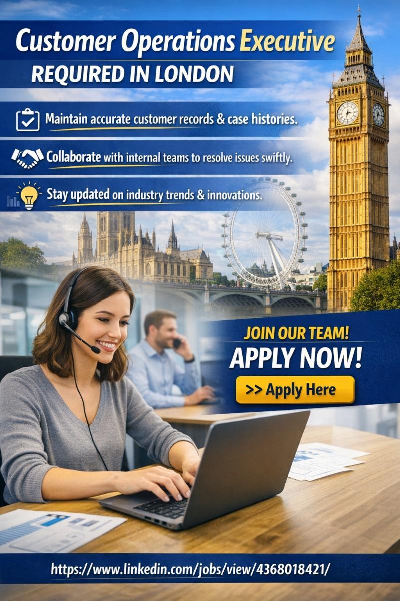 Customer Operations Executive Required in London - London