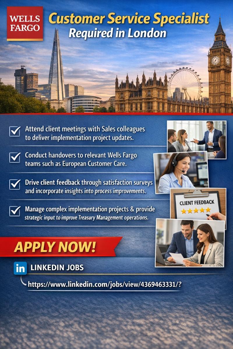 Conduct handovers to relevant Wells Fargo teams such as European Customer Care.