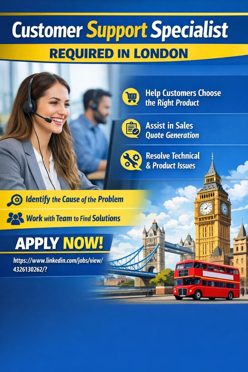 Customer Support Specialist Required in London