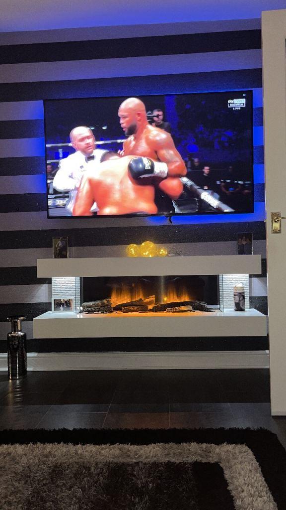 Immaculate white fire with logs and slates,connects through WiFi and app on phone to turn on and off lights and heat..was bought for £1400..was just recently serviced,got media wall recently with fire included in deal so that’s only reason for moving it on