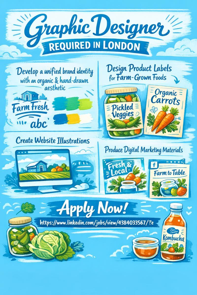 This role is ideal for a creative brand designer passionate about organic food and visual storytelling. The position involves developing a cohesive visual identity for a small Illinois-based farm specializing in value-added products such as sauerkraut, cold-pressed juices, and kale chips. The designer will be responsible for crafting vibrant, hand-drawn style vector illustrations that capture the freshness and authenticity of farm-grown produce. The goal is to create a colorful, organic brand presence across the website, product labels, and digital marketing materials, ensuring all assets reflect the farm’s mission and values.