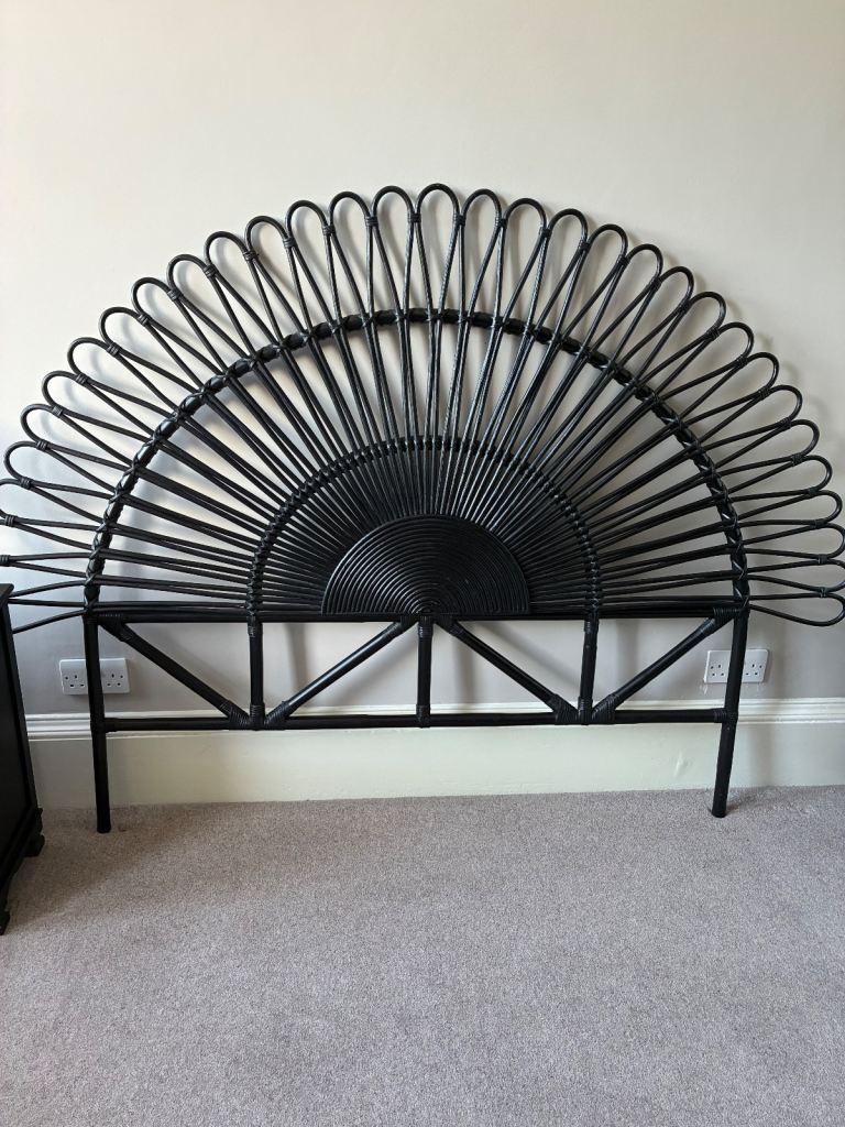 Lovely MERAK Black rattan king size headboard 150cm … Like new cost £195 I’ve got receipt.