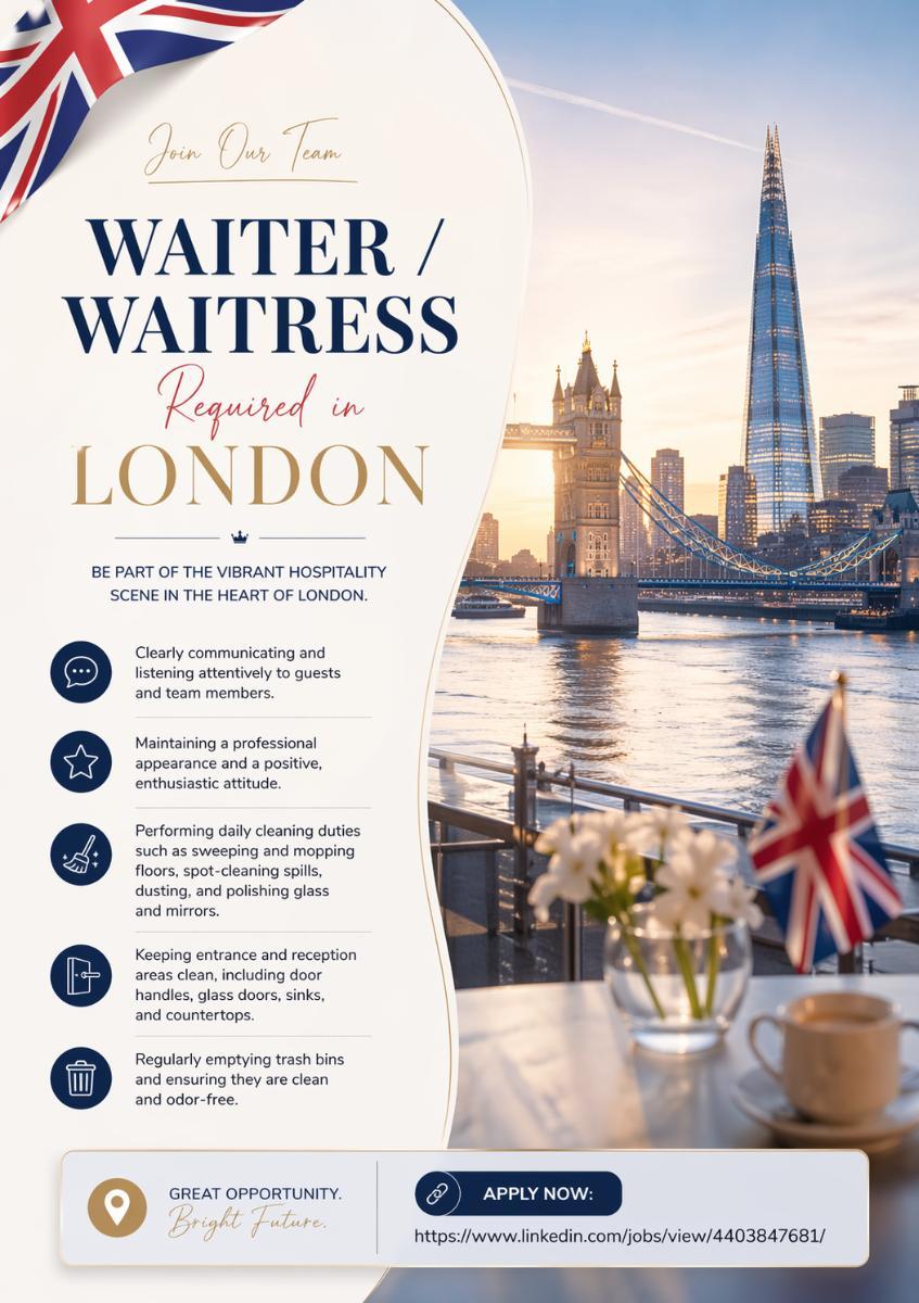 Waiter / Waitress Required in London