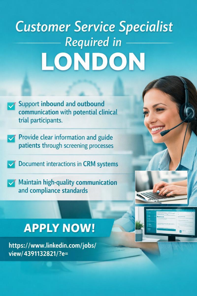 Customer Service Specialist Required in London