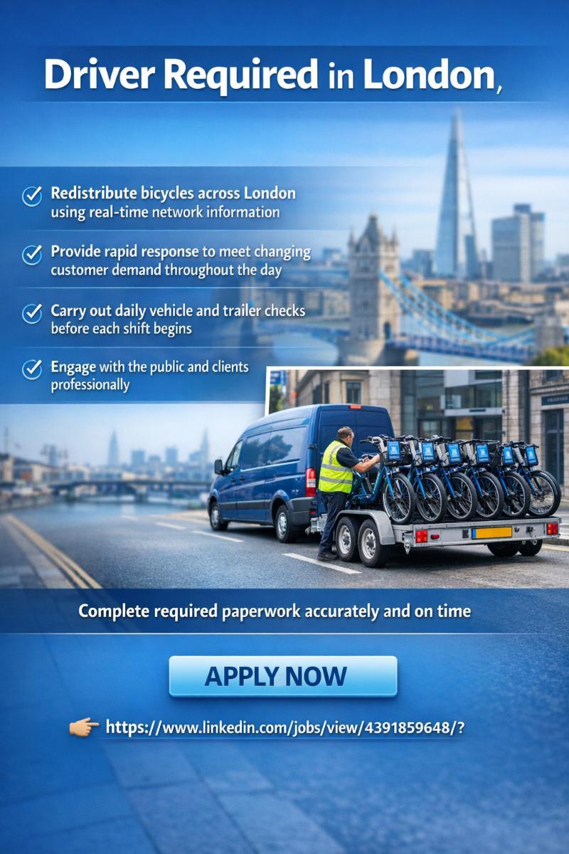 As a Driver in our London Cycle Hire Scheme (LCHS) team, you’ll help keep the city moving by ensuring bicycles are where they’re needed most. Your work will directly support thousands of daily journeys and contribute to a transport network that touches lives across London.