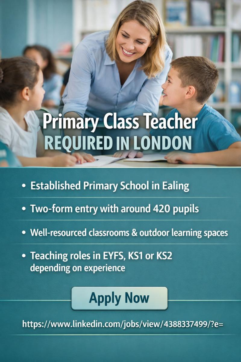 A well-regarded primary school in Ealing is looking to appoint a Primary Class Teacher for a September start.